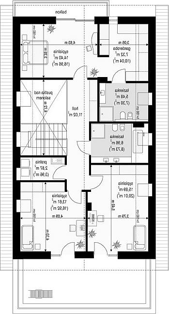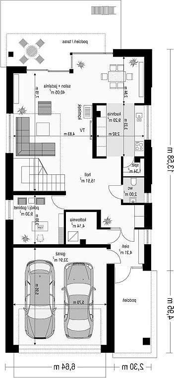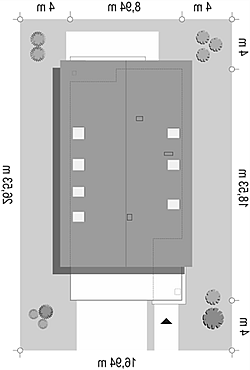 Projekt domu Salsa to jeden z projektów z serii domów wywodzących się z projektu „Party” (Party, Party 2, Rumba, Biba, Fokstrot, Samba, Tango). Salsa to dom jednorodzinny przeznaczony dla cztero-sześcioosobowej rodziny. Dom parterowy z poddaszem użytkowym, o prostej bryle przykrytej dwuspadowym dachem, z wystającą nieco poza główną bryłę parterową częścią garażu. Projekt przeznaczony jest na wąską działkę, która nie pozwala na budowę budynku o szerokiej elewacji frontowej. Minimalna szerokość działki to 16,9 metrów, ale zamieniając w jednej z bocznych elewacji okna na luksfery możemy posadowić dom na działce o szerokości poniżej 16-tu metrów (nawet na działce o szerokości 14,6 m - jeśli jest zgoda na zbliżenie się ścianą bez okien na 1,5 m od granicy). Prosta spokojna bryła domu połączona z nowoczesną formą i zastosowanymi materiałami daje atrakcyjną sylwetkę „Salsy”. Front domu ozdabia duży podcień wejściowy, z reprezentacyjnymi drzwiami. Od strony ogrodu mamy z kolei częściowo zadaszony taras, piękne przeszklone otwarcie przestrzeni dziennej na ogród, oraz taras –balkon poddasza. Nowoczesna stonowana kolorystyka domu pozwoli „Salsie” właściwie wkomponować się w dowolne sąsiedztwo. Wnętrze domu zaprojektowano sytuując garaż obok wejścia, od frontu. Z sieni przechodzimy szerokimi szklanymi drzwiami do holu. Hol ma bardzo poręczną wnękę z dużą szafą przy przedsionku. Z holu otwiera się nam piękny widok na salon z pustką nad częścią jego powierzchni i nad schodami będącymi ozdobą wnętrza. Obok mamy bardzo praktyczną kuchnią typu „wagon”, oraz przestronny aneks jadalny. Salon i jadalnia łączą się przeszklonymi drzwiami z tarasem i ogrodem. Z holu możemy dostać się jeszcze do dodatkowego pokoju (np. gabinet), oraz wc. Na poddaszu mamy piękny holl- antresolę, widoczną z salonu na dole. Antresola stanowi most łączący apartament rodziców (z sypialnią, bardzo ładną garderoba, łazienką i balkonem-tarasem ogrodowym), z częścią poddasza przeznaczoną na dwie sypialnie dzieci, łazienkę i pralnię. Sypialnie dziecięce również mają wyjście na drugi balkon-taras. Dom ma prostą bryłę, nowoczesną architekturę, piękne wnętrze z pustką nad salonem - no i przede wszystkim jest to doskonały projekt na wąską działkę. Do tego dom ma prostą konstrukcję - będzie niedrogi w budowie i późniejszym utrzymaniu. Wąska działka nie musi być wcale wadą - wystarczy zdecydować się na właściwy projekt - oczywiście najlepsza jest Salsa :) ! Zapraszamy!